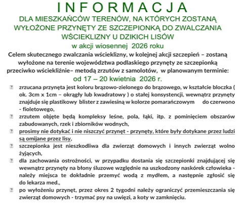 Powiatowy Lekarz Weterynarii w Białymstoku informuje, że w dniu 3 lutego 2026 r. opublikowane zostało Rozporządzenie Nr 6/2026 Wojewody Podlaskiego z dnia 3 lutego 2026 r. w sprawie zakazu organizowania targów, wystaw, pokazów lub konkursów z udziałem ptaków na obszarze województwa podlaskiego (Dz. Urz. Woj. Podlaskiego 2026.514). Zgodnie z: §1. Na obszarze województwa podlaskiego zakazuje się...