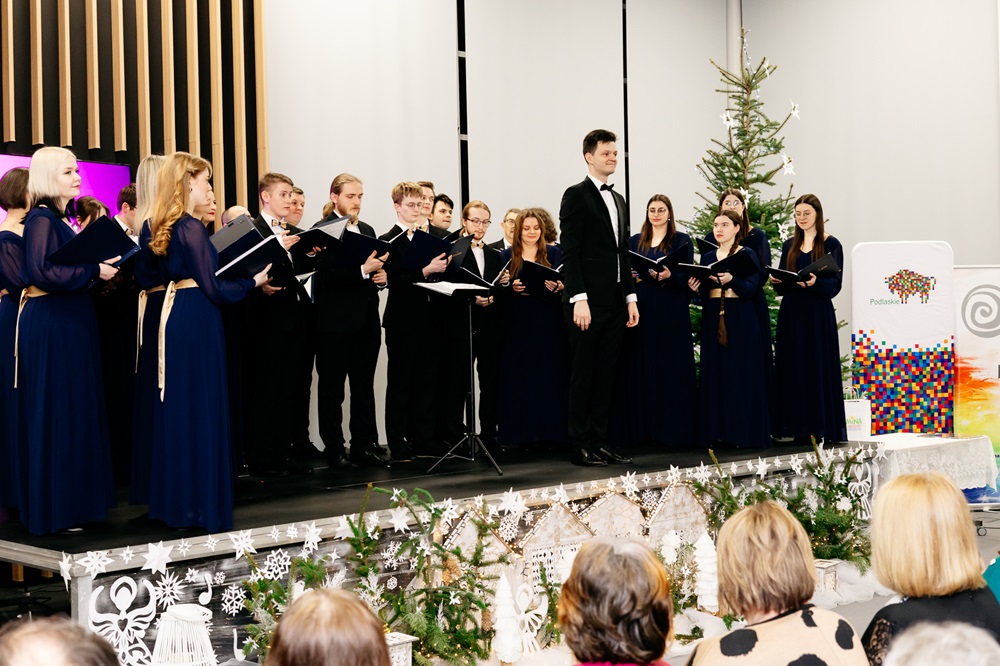 W koncertowy nastój wprowadziły występy dzieci i młodzieży ZESPOŁU SZKÓŁ W KLEOSINIE. Wzruszeń dostarczyły kolędy w wykonaniu MAGDELENY LEWANDOWSKIEJ. Wspaniale „Pierwszą Kolędę” Johna Petersona zaśpiewała połączona ekipa Ośrodka Kultury złożona z chórów VIVA ARTE i VOX AURORA. W trakcie spotkania wręczyliśmy również wyróżnienia laureatom konkursu „Choinka moich marzeń”. Chłonęliśmy świąteczną atmosferę, którą jeszcze wzbogaciła wizyta kolędników Studia Folkloru Podlaskich Białorusinów „ŻEMERWA”. Jubileuszowym finałem był koncert jednego z najlepszych zespołów chóralnych w Polsce – VARSLAVII. Piękne, pełne ciepła i nostalgii utwory były najśliczniejszym zwieńczeniem wieczoru. Wieczoru, który zakończyliśmy wspólnym odśpiewaniem z VARSLAVIĄ kolędy „Bóg się rodzi”. Śpiewała publiczność, śpiewali chórzyści, słowa i melodia kolędy niosły się po całej gminie.